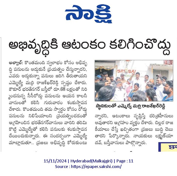 మల్కాజ్గిరి అభివృద్ధి లక్ష్యం- ఎమ్మెల్యే మర్రి రాజశేఖర్ రెడ్డి